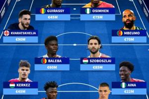 前鋒:克瓦拉茨赫利亞(格魯吉亞、9000萬)、吉拉西(幾內(nèi)亞、4500萬)、奧斯梅恩(尼日利亞、7500萬)、姆伯莫(喀麥隆、7000萬)