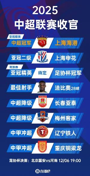體育資訊11月22日訊 2025賽季中超賽季收官,上海申花3-1客勝天津津門虎,2分之差獲得亞軍。