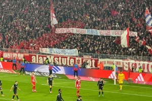 體育資訊11月24日訊 拜仁在本輪德甲焦點(diǎn)戰(zhàn)6-2逆轉(zhuǎn)弗賴堡,拜仁死忠“南看臺(tái)”在比賽中打出橫幅,侮辱同城死敵慕尼黑1860的主席格爾諾特·曼格是“婊子養(yǎng)的”。