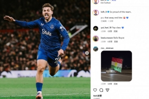 霍爾也在賽后通過社媒曬出自己的慶祝照,并配文:“為這支球隊(duì)感到無比自豪..順帶一提,我們的客場球迷(真是絕了)??”