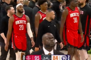 GIF-阿門退防時被撞倒,頭部重重摔倒地板上
