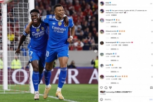 本場(chǎng)比賽姆巴佩上演大四喜,維尼修斯也送出兩次助攻。賽后維尼修斯社媒曬出與姆巴佩慶祝合影,配文寫道:“一場(chǎng)大勝,姆巴佩獨(dú)中四元,取得歐冠第27次助攻,未來(lái)還有更多!”