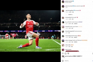 本場比賽馬丁內(nèi)利破門鎖定勝局,賽后他也在社媒曬出本場慶祝進球照片,配文寫道:“重回聚光燈下!