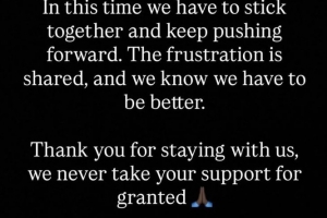 中場帕佩·薩爾在賽后通過社媒發(fā)文向球迷們致歉:“在這段時期,我們必須團結(jié)一致,繼續(xù)前進。我們同樣感到沮喪,并且深知我們必須做得更好?!?/p>