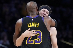本場(chǎng)比賽里夫斯爆砍44分5籃板11助攻,談到他的表現(xiàn),詹姆斯說(shuō):“我真的超級(jí)超級(jí)為他感到高興?!?/p>