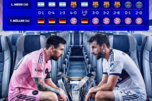 體育資訊12月6日訊 本屆美職聯(lián)總決賽將在邁阿密國際和溫哥華白浪之間舉行,38歲的梅西和36歲的穆勒也再次相遇。《轉會市場》也列出了兩人歷史交鋒情況: