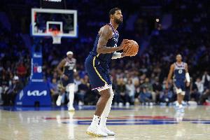 上半場比賽,喬治進(jìn)攻端里突外投狀態(tài)在線,他出戰(zhàn)12分鐘,6中4,三分2中1,罰球2中2拿到11分2助攻,正負(fù)值+9。