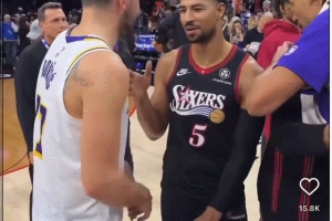 賽后,東契奇和前隊(duì)友格萊姆斯寒暄幾句。