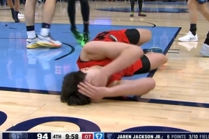 "倒地不起之后,裁判并沒有吹停比賽。根據(jù)規(guī)則,在這種情況下比賽通常不會(huì)被叫停。我記得卡梅隆·安東尼曾經(jīng)也有過類似的情況,他在一次比賽中臉部被擊中后倒地,幾乎整整一分鐘的比賽時(shí)間內(nèi)都躺在地上,期間雙方進(jìn)行了多次攻防轉(zhuǎn)換。這時(shí)除非教練叫暫停,否則比賽一般不會(huì)因此中斷。有時(shí)候裁判會(huì)吹停比賽,但如果球員沒有妨礙到比賽進(jìn)行,他們通常不會(huì)這么做。像這樣的情況,比賽還是會(huì)繼續(xù)進(jìn)行,直到出現(xiàn)自然的停頓或者有人叫暫停。如果沒有的話,裁判也沒有義務(wù)必須吹停比賽。我并沒有覺得裁判在操控比賽。”