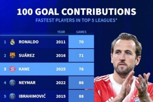 體育資訊12月9日訊 德國轉會市場統(tǒng)計了本世紀五大聯賽球員在單一聯賽參與100球所用的場次,并列出最快達成100球排名,C羅居首,蘇亞雷斯、凱恩二三位。