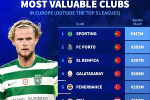歐洲非五大聯(lián)賽球隊(duì)身價(jià)排名: