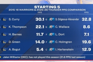 注:雷霆的杰倫·威廉姆斯賽季至今未出戰(zhàn),上賽季他場(chǎng)均21.6分。