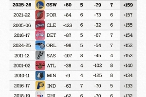 據(jù)統(tǒng)計(jì),勇士本賽季至今12場(chǎng)比賽,主場(chǎng)凈勝對(duì)手80分,客場(chǎng)凈負(fù)79分,主客場(chǎng)凈勝分差值達(dá)到159,創(chuàng)下了本世紀(jì)以來所有球隊(duì)賽季前12場(chǎng)比賽的最懸殊紀(jì)錄。