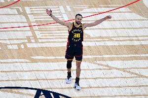 體育資訊11月13日訊 勇士客戰(zhàn)馬刺,第三節(jié)庫里單節(jié)9分鐘狂轟22分。