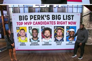 體育資訊11月15日訊 評論員帕金斯在節(jié)目中給到了自己的賽季至今的MVP名單前五球員。他把亞歷山大排在了第一位,約基奇排在了第二位,康寧漢姆放在了第三位。