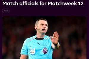 體育資訊11月18日訊 英超官方公布聯(lián)賽第12輪各場執(zhí)法裁判,邁克爾-奧利弗將執(zhí)法阿森納vs熱刺。