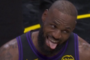 GIF-詹姆斯打停爵士吐舌頭慶祝