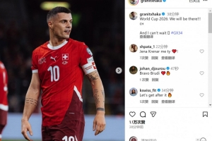 此役扎卡為瑞士首發(fā)出戰(zhàn),賽后他在社交媒體上曬出比賽照片,慶祝球隊(duì)出線,配文:“2026年世界杯——我們來(lái)了!我已迫不及待?!?/p>