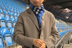 詹俊提前踩場(chǎng),佩戴主場(chǎng)藍(lán)色系的圍巾。詹俊介紹,咪咕的待遇比天空電視臺(tái)的還要“高”。