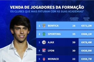 體育資訊11月21日訊 德國(guó)轉(zhuǎn)會(huì)市場(chǎng)統(tǒng)計(jì)了本世紀(jì)各俱樂(lè)部出售青訓(xùn)球員的收入,并列出榜單,本菲卡、葡萄牙體育、阿賈克斯前三。