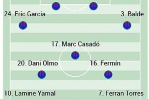 體育資訊11月22日訊 北京時(shí)間今天23點(diǎn)15分,巴薩將在西甲第13輪比賽中主場(chǎng)對(duì)陣畢爾巴鄂競(jìng)技?!栋⑺箞?bào)》預(yù)測(cè)了巴薩此役的首發(fā)陣容。