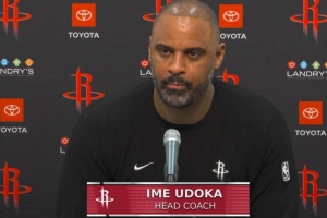 賽后主帥烏度卡接受了采訪。談到對陣舊將狄龍,烏度卡說:“狄龍在比賽中表現出色,讓人感受到他的額外侵略性和動力。他投進了一些高難度的球,展現了他近期的良好狀態(tài)。我們知道他會帶著強烈的侵略性和動力打比賽?!?/p>