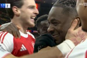 阿森納4-1擊敗熱刺笑傲北倫敦德比,在天空體育賽后曬出的比賽鏡頭中,不少球迷在視頻里聽到了賴斯在球隊進球后的一次喊話。