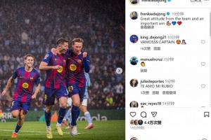 德容社媒曬出與萊萬慶祝進球的合照,配文:“球隊展現(xiàn)了很棒的態(tài)度,收獲一場重要的勝利?!?/p>