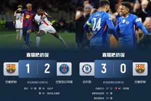 體育資訊11月26日訊 今日凌晨的歐冠,巴薩0-3不敵切爾西,歐冠戰(zhàn)績來到2勝1平2負。