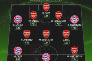 體育資訊11月27日訊 拜仁將在本輪歐冠客戰(zhàn)阿森納,whoscored也列出了兩隊(duì)本賽季歐冠評(píng)分合體最佳陣,阿森納7將在列。