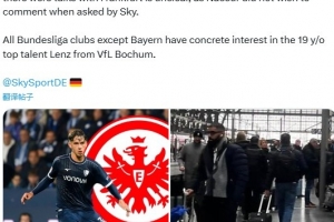 本周四,倫茨的經(jīng)紀(jì)人馬克拉姆·納賽爾出現(xiàn)在法蘭克福,但是否與法蘭克福進(jìn)行了會(huì)談尚不清楚,因?yàn)榧{賽爾在接受天空體育采訪時(shí)拒絕發(fā)表評(píng)論。除了拜仁之外,所有德甲俱樂(lè)部都對(duì)這位來(lái)自波鴻的年輕天才表示了濃厚的興趣。