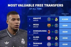 體育資訊11月29日訊 德國轉(zhuǎn)會市場列出了自由轉(zhuǎn)會球員身價排名,姆巴佩1.8億歐居首,梅西8000萬歐次席。