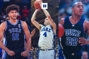 這是他賽季前8場比賽中,第二次砍下單場35分。自1985-86賽季NCAA引入投籃時(shí)間限制以來,杜克大學(xué)歷史上只有三位球員做到過單賽季多次單場得分35+。另外兩位是雷迪克(兩個(gè)賽季做到,05-06賽季更是單賽季7次、其中包括3場40+)、杰伊·威廉姆斯(注:圖中標(biāo)注賽季有誤,應(yīng)為01-02賽季)