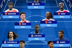 前鋒:馬杜埃凱(阿森納)、內(nèi)托(切爾西)、薩卡(阿森納)