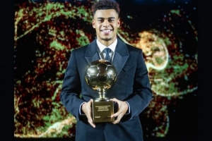 姆巴佩社媒曬出杜埃領獎的照片,配文:“祝賀你,天才!實至名歸!盡情享受這一刻,盡快康復,早日歸來!”