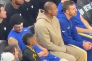 比賽中鏡頭捕捉到有趣的一幕:追夢上場比賽時(shí),他的兒子小追夢坐在他的位置上認(rèn)真觀看,幫爸爸暖凳子。