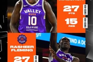 本場比賽太陽兩名新秀均發(fā)揮出色,7號秀馬盧阿奇14投10中,三分1中0,罰球5中5,砍下27分15籃板1助攻4蓋帽;次輪狀元弗萊明18投11中,三分9中4,罰球2中1,砍下27分13籃板2助攻3搶斷;另外達(dá)米恩·鮑18投9中,三分7中3,罰球4中4,砍下26分5籃板8助攻4搶斷1蓋帽。
