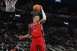 鵜鶘新秀費爾斯首節(jié)表現(xiàn)出色,不僅外線兩度干拔三分命中,還有一條龍快攻上籃的精彩表現(xiàn),他還助攻馬特科維奇完成空接暴扣。