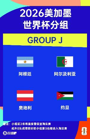體育資訊12月06日訊 2026年美加墨世界杯小組賽抽簽儀式結(jié)束,阿根廷與阿爾及利亞、奧地利、約旦同組。