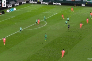兩分鐘后費(fèi)蘭凌空側(cè)鉤破門完成雙響,巴薩反超比分,2-1貝蒂斯!