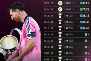 據(jù)Sofascore統(tǒng)計(jì),梅西職業(yè)生涯至今13次贏得聯(lián)賽冠軍,包括西甲10冠、法甲2冠、美職聯(lián)1冠。
