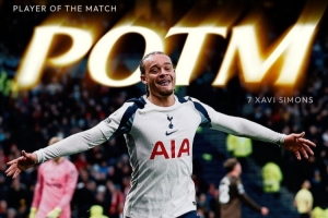 據(jù)賽后熱刺官方消息,哈維·西蒙斯被評(píng)為此役隊(duì)內(nèi)最佳球員。
