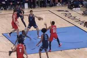 “楊瀚森先是用一個(gè)假動(dòng)作讓防守球員上當(dāng),隨后運(yùn)球突破制造內(nèi)線威脅。在吸引到對(duì)方協(xié)防后,他迅速將球傳給卡馬拉,后者輕松完成扣籃。在夏季聯(lián)賽中他就多次展現(xiàn)了出色的組織能力,這次進(jìn)攻再次證明了他的潛力?!盤oint Made Basketball寫道。