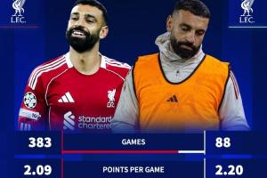 體育資訊12月08日訊 在薩拉赫炮轟利物浦將自己當(dāng)作替罪羊后,德轉(zhuǎn)統(tǒng)計(jì)了利物浦在薩拉赫出場(chǎng)以及缺陣的下的戰(zhàn)績(jī)對(duì)比,在薩拉赫缺陣時(shí),利物浦的場(chǎng)均積分、進(jìn)球數(shù)更高,但丟球數(shù)也更多。