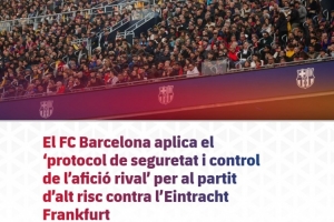 體育資訊12月8日訊 巴薩發(fā)布官方公告,12月10日4點(diǎn)在諾坎普球場(chǎng)對(duì)陣法蘭克福的歐冠比賽被列為“高風(fēng)險(xiǎn)賽事”,俱樂(lè)部已啟動(dòng)嚴(yán)格的安保管控方案。