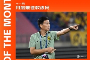 體育資訊12月8日訊 中甲聯(lián)賽官方公布了11月最佳教練人選,廣州豹主帥馮峰當(dāng)選。