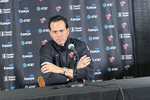 賽后采訪,主帥斯波表情凝重,談到本場失誤他表示:“對(duì)手在第二節(jié)打得非常棒,而我們總在犯同樣的錯(cuò)誤,當(dāng)我們無法投進(jìn)球時(shí),我們的防守會(huì)陷入困境,無法阻止對(duì)手得分。你不能讓防守來完全決定勝負(fù)……不管你投不投得進(jìn)三分……你需要找到其他贏球的方式?!?/p>