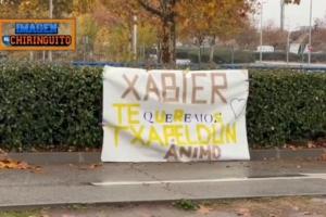 由于皇馬近期戰(zhàn)績不佳,主帥阿隆索面臨下課危機(jī),有球迷在皇馬基地外掛橫幅支持阿隆索,橫幅上面寫著:“哈維(阿隆索),我們愛你,冠軍,加油。”