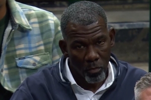 比賽中鏡頭捕捉到獨(dú)行俠名宿、臨時(shí)管理層邁克爾·芬利來到現(xiàn)場(chǎng)看球。