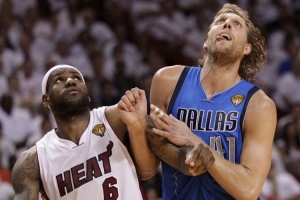 2011年,詹姆斯轉投熱火后與小牛在總決賽相遇,雙方大戰(zhàn)6場,熱火2-4丟冠。
